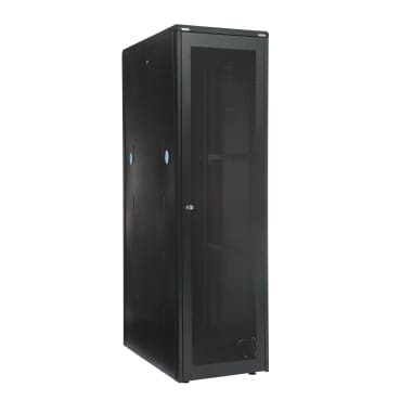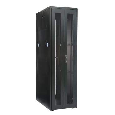 Presentation | This Cyberack is a 42U rack enclosure engineered for easy assembly and rapid equipment integration at the site while being extremely robust and flexible. The design is based on the use of aluminum profiles for the four vertical pillars, which are connected to two welded steel end-frames. It is an ideal choice for mid-range use as a server enclosure or for network cabling purposes. Perfect for mid-ranged IT requirements, the many features of the Cyberack help you create secure IT environments that are elegant and cost-effective. |